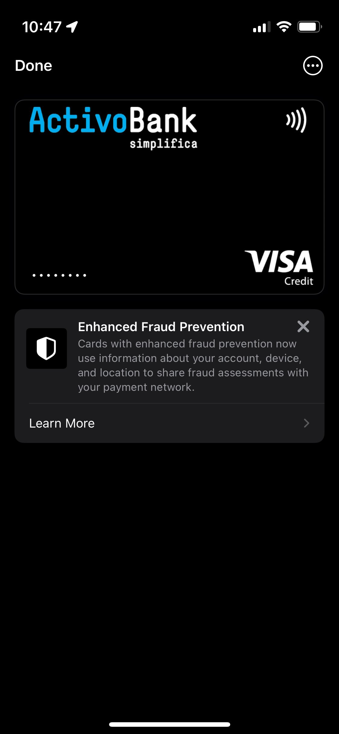 "For cards with certain enhanced fraud prevention, when you attempt an online or in-app transaction, your device will evaluate information about your Apple ID, device, and location (if you have enabled Location Services), to develop fraud prevention assessments, which are used by Apple to identify and prevent fraud."