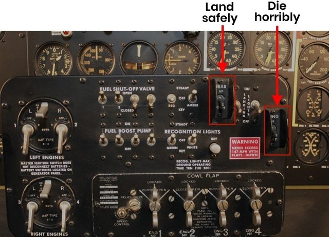 I was confused by the B17 fact; if you’re at the stage of lowering the gear (flying slowly), pulling the wrong lever and going full flap would do not much? Now if you were taking off and went to raise the gear and lifted the flaps instead, then that's a problem.