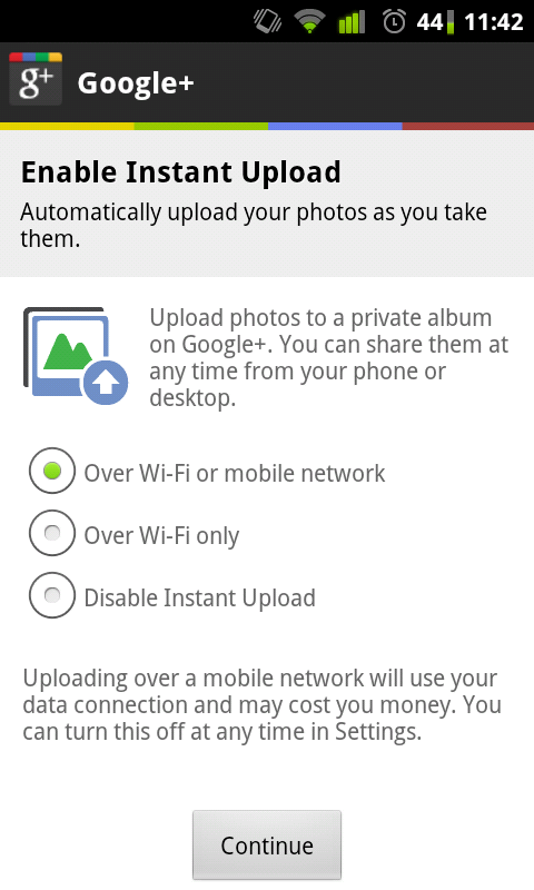 mikespook.comI'm not really sure I understand this. Was there some kind of bad translation? Instant Upload explains what it is and asks if you want to upload photos to the internet to a private album where you can then selectively share them without uploading.