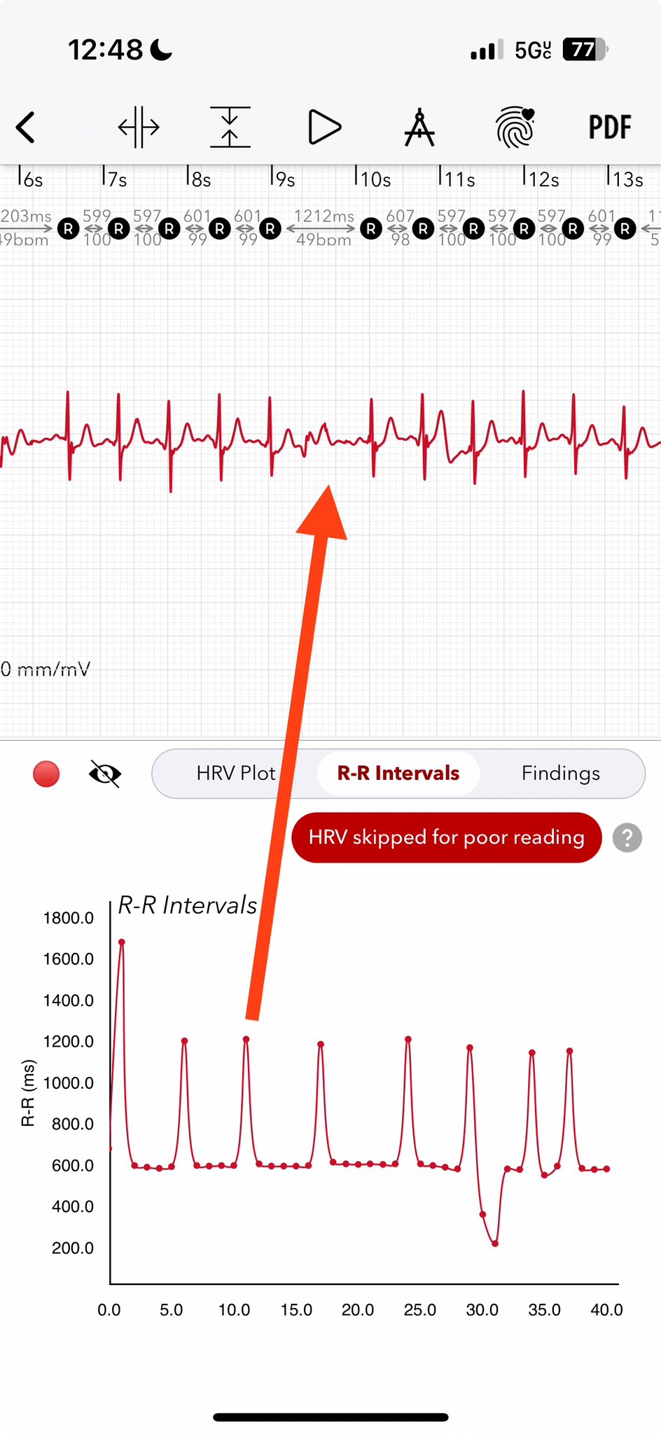 Basic comment was that the person confuses and misunderstands many things. According to my friend, the range marked as "missed beat" contains a premature heart beat [1].