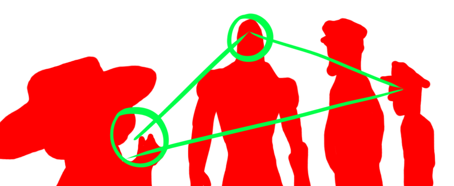 You'll notice that the triangular composition shots had three figures on three different levels in the shot, when most shots with a single figure in them had their head at basically the same level, right below the top of the frame. If the default placement for a character's head is near the top of the frame, it would indeed be a conscious choice when placing three head in a shot to make them at three different levels.