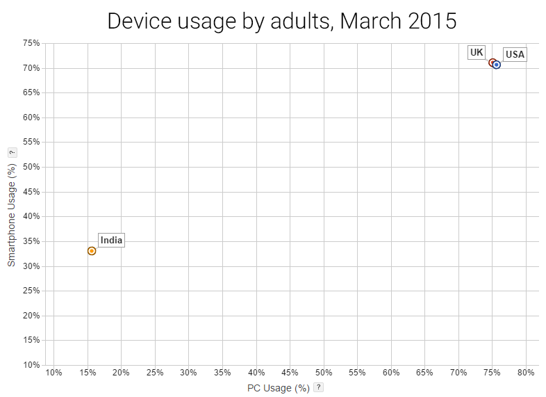 Let’s start with Google’s decision to not give Allo a Web or desktop client. In India, the dominant computing device—now and in the future—is the smartphone. According to data from Dutch research firm TNS Infratest, March 2015 PC usage in the US and UK were both around 75 percent. PC usage in India, by contrast, is at only 15 percent of adults for the same period. In fact, India had the second-lowest PC usage of the 59 countries surveyed.