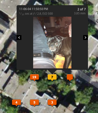 Within the Map module, a nice little pop-up slideshow for locations with multiple images: