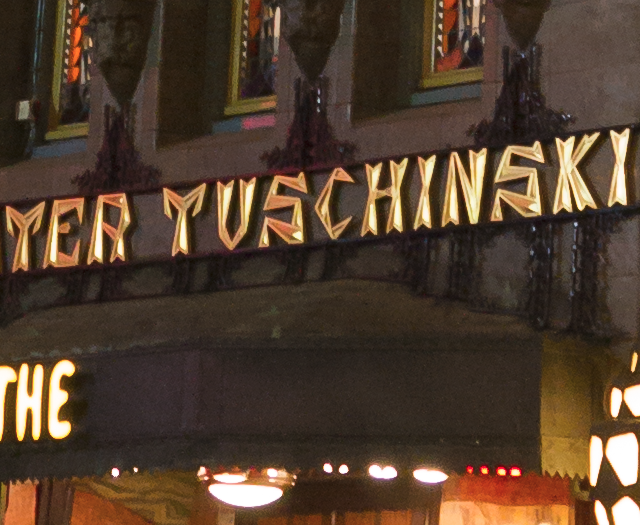 A stellar conversion overall and surprisingly sharp and noise free for 2000ISO at night with the 7D. Chromatic aberration reduction is not as good as DxO Optics Pro or C1 but it’s definitely the cleanest looking overall. The lines around the stained glass windows are free of artifacts, showing that Lightroom’s initial RAW demosaic filter really helps with a tricky combo of sharp lines and noise. The only issue the red fringing. This is the poster child for shooting RAW and it could pass for a 200ISO JPEG from the camera. “Lush” and “2000ISO” are not things you usually see in one sentence.
