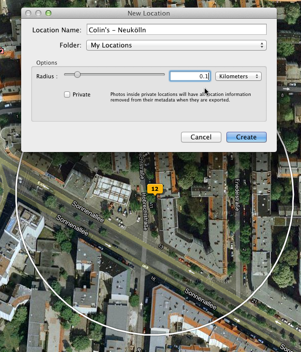 As you can see above, locations can be marked private for export. I think Dick Cheney requested that feature.