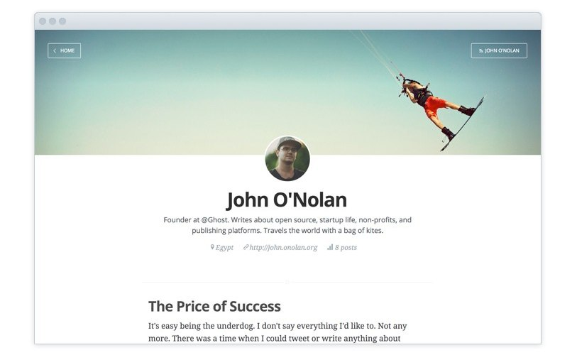 This post, you may have noticed, is the first on the Ghost.org blog which is not written by John. Our flagship feature for this release is that Ghost now has support for multiple Authors, Editors and Administrators. Company, community and collaborative blogs are now all possible.
