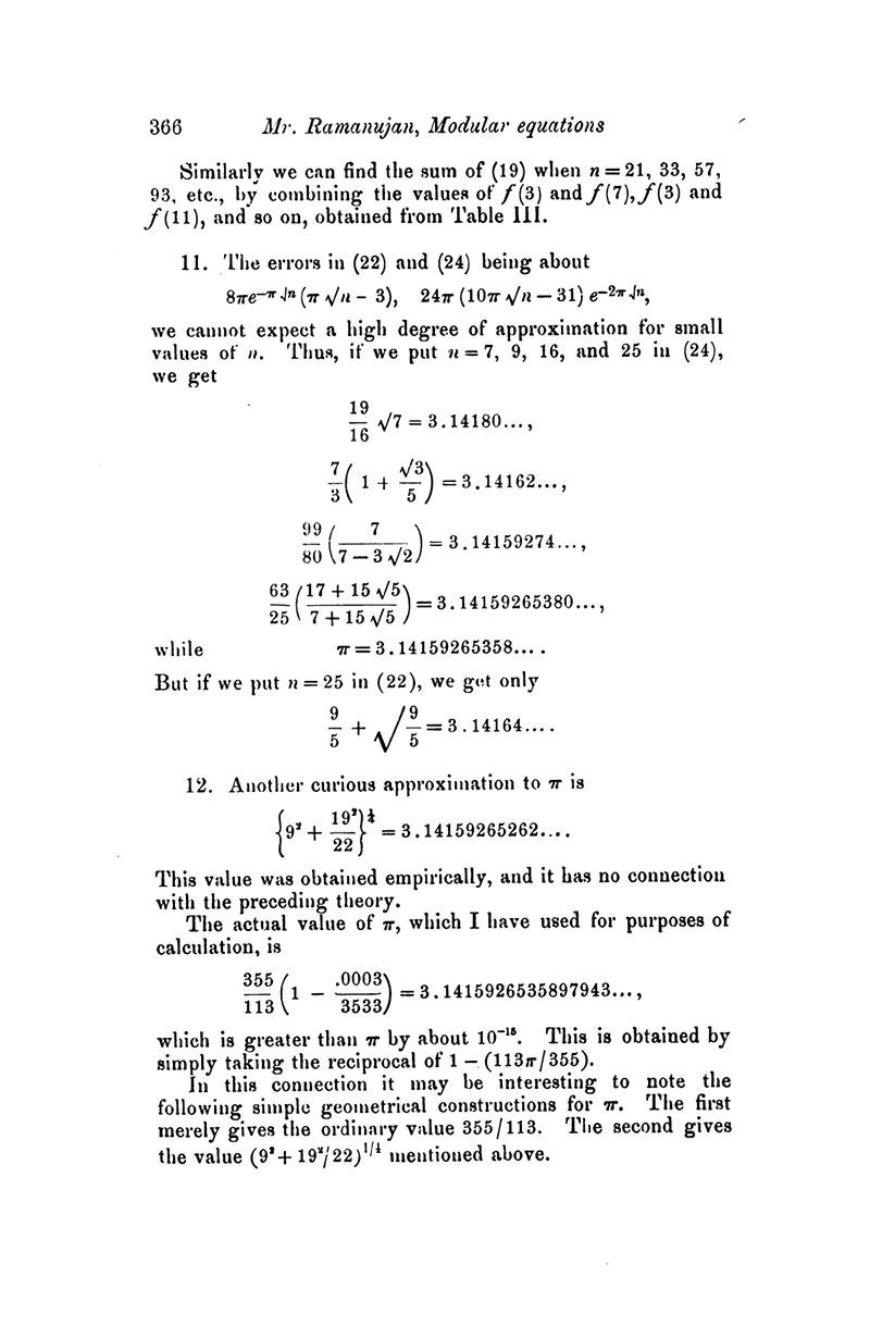 Take for example his paper “Modular Equations and Approximations to π”, published in 1914, in which he calculates (without a computer of course):