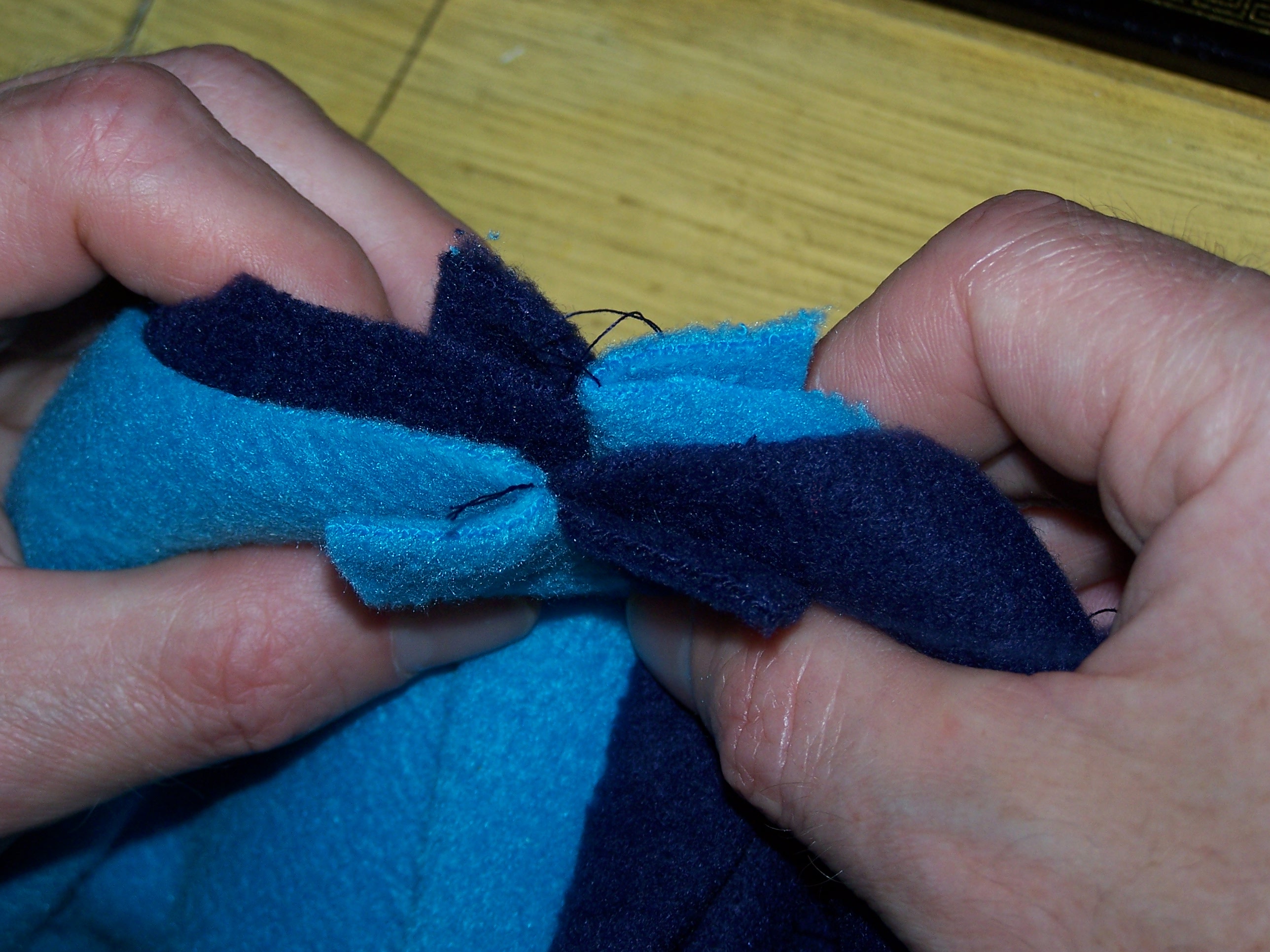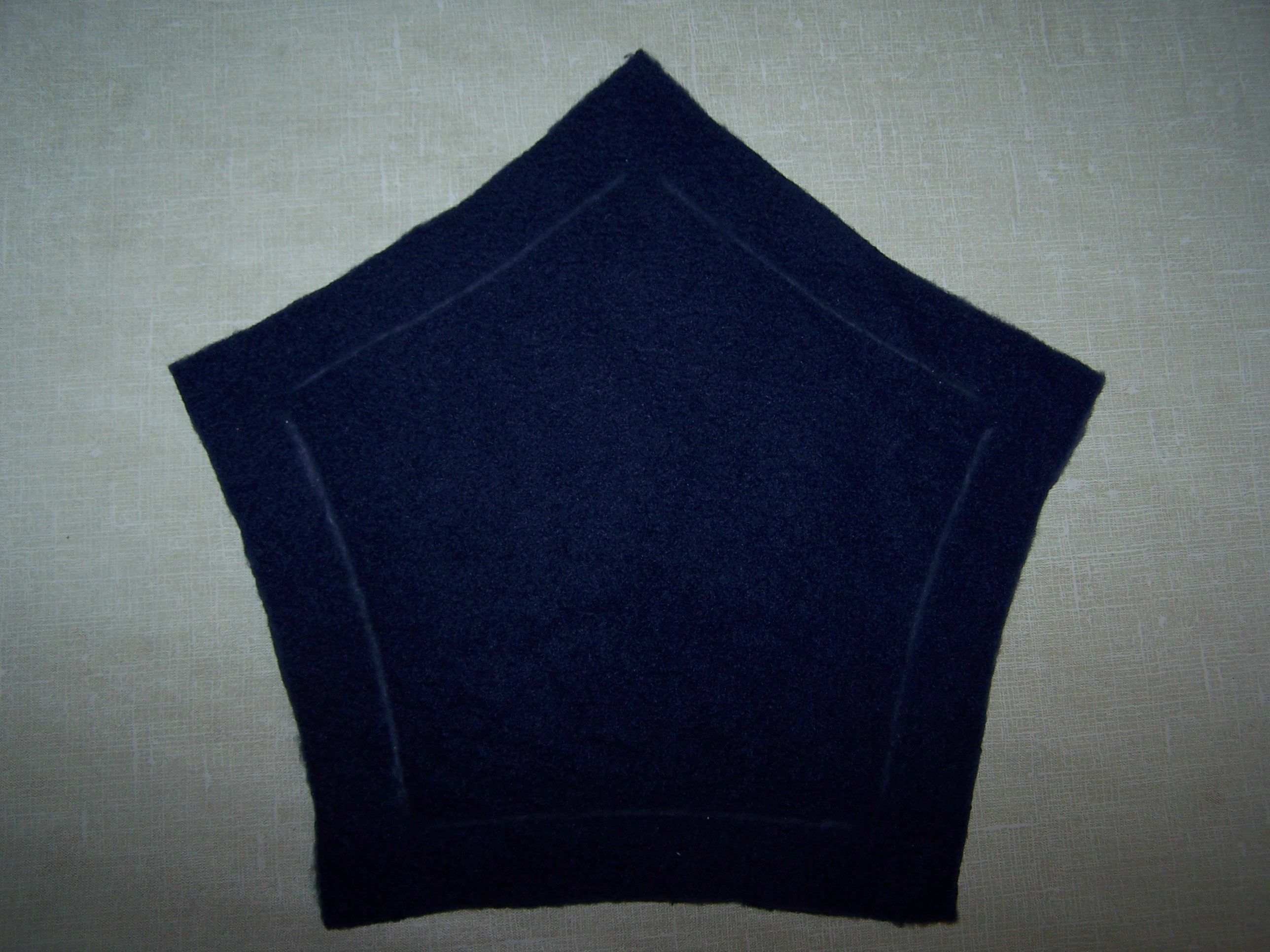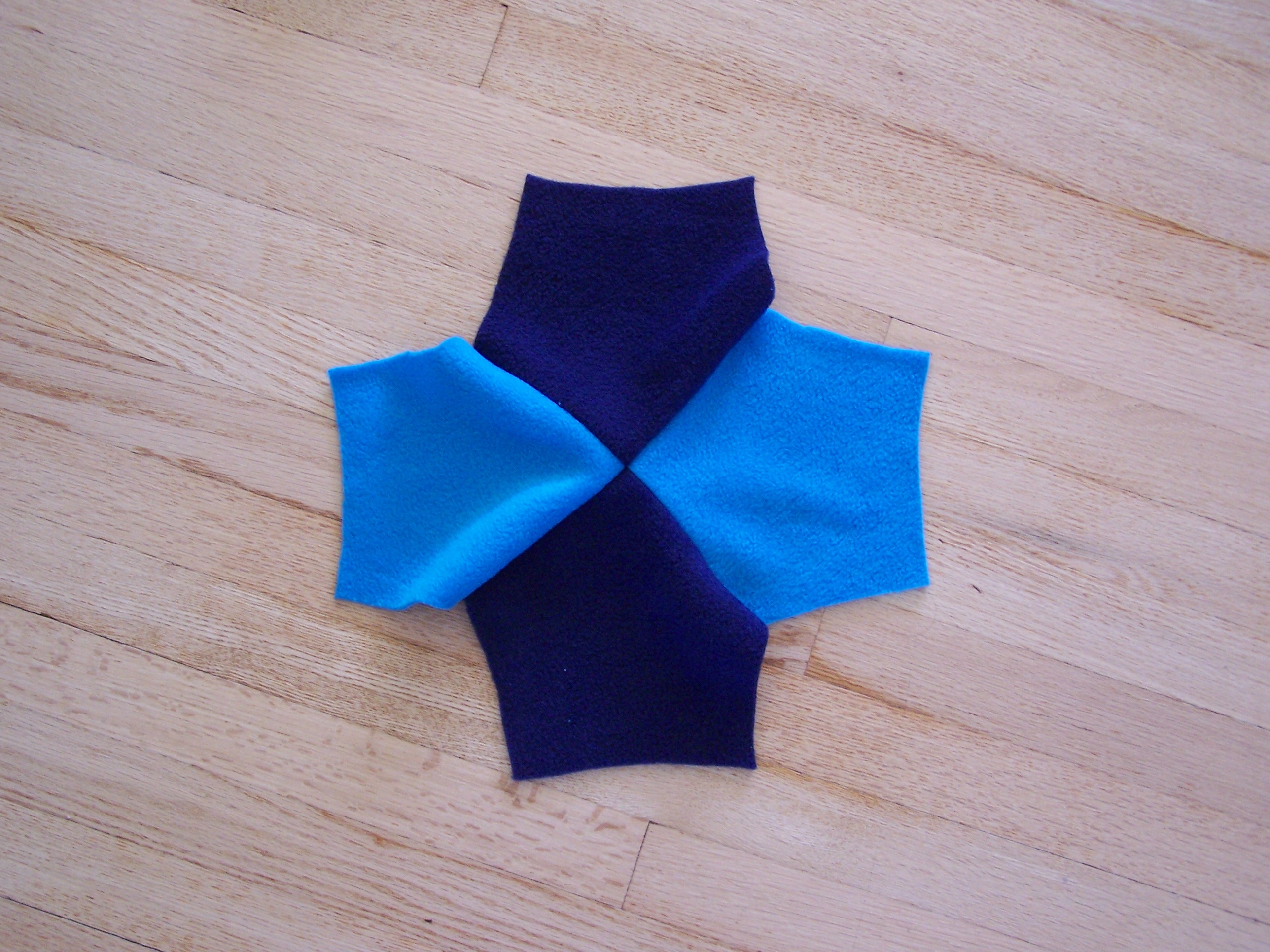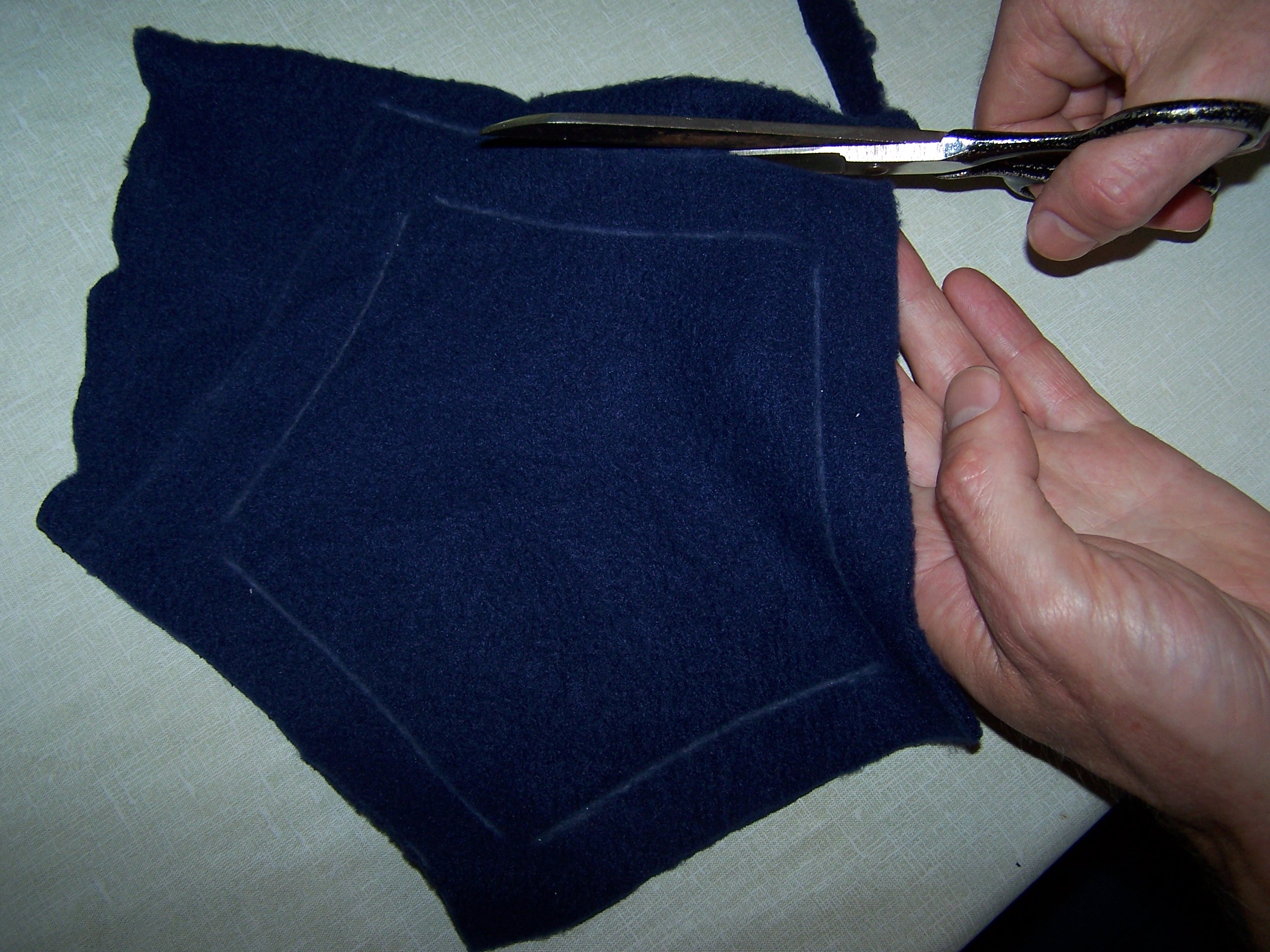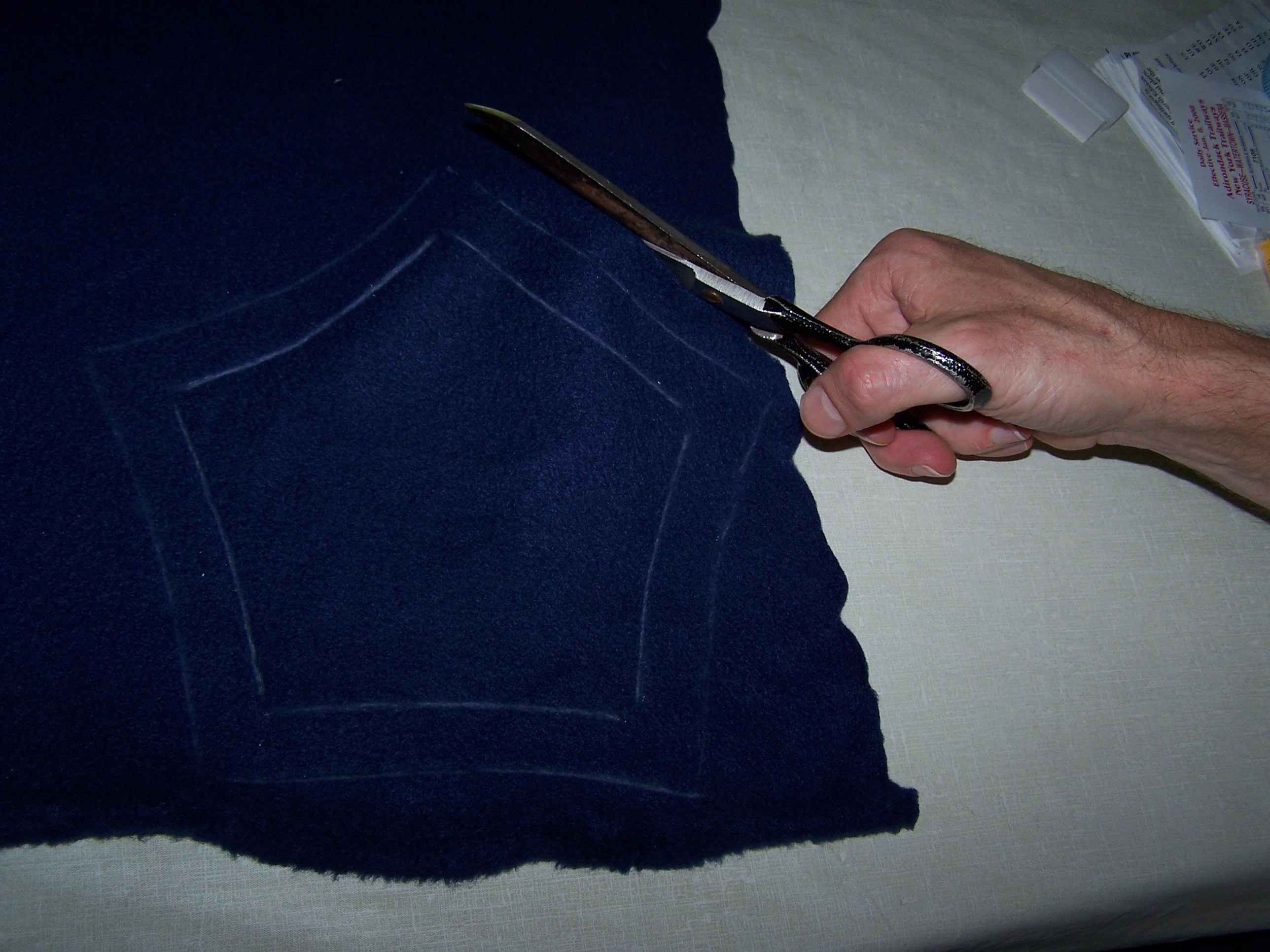 Now that you’re no longer holding the whole bulky sheet of fleece in your hands, cut more carefully along the pentagon’s perimeter.