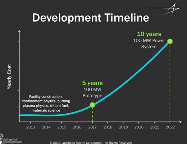 LPP Fusion (Lawrenceville Plasma Physics) – the target is to make LPP Fusion with a commercial system 4 years after net energy gain is proved. The hop is two years to prove net energy gain. Then 2019-2022 for a commercial reactor (2022 if we allow for 3 years of slippage). They could lower energy costs by ten times.