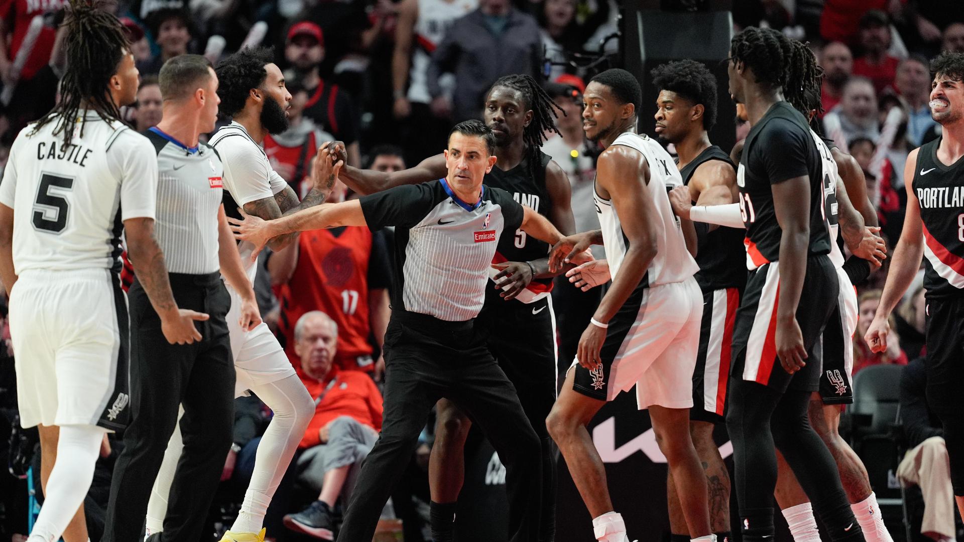 Deni Avdija and Stephon Castle get into shoving match late in Spurs' win