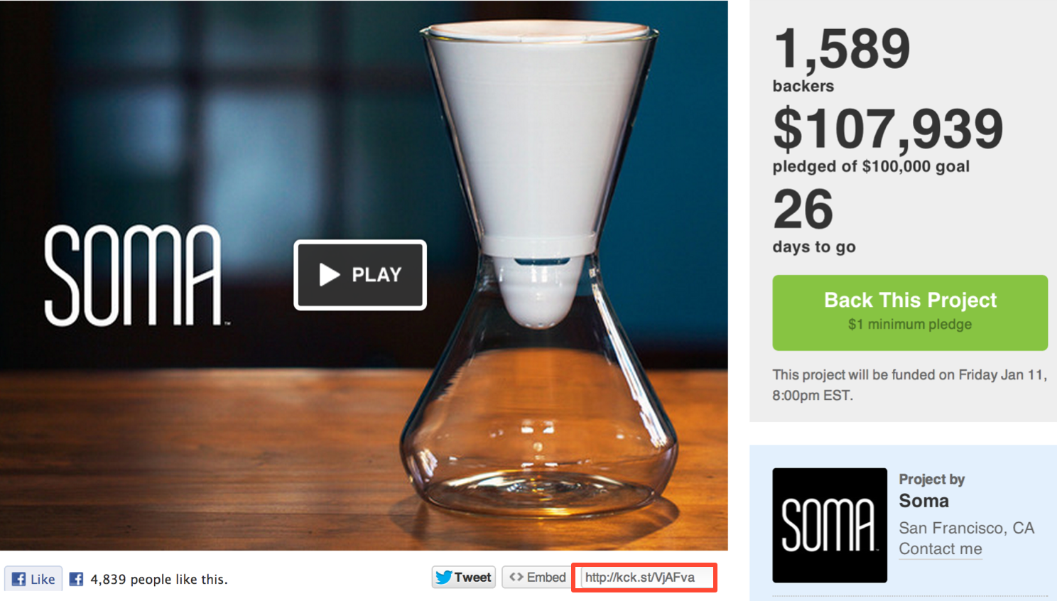After witnessing the value of good.is featuring Soma in their email newletter, we completely changed the way we thought about press coverage. A blog post is just the beginning. Once you get covered, you need distribution. You need to reach your prospective backers through email, RSS feeds, and social media.