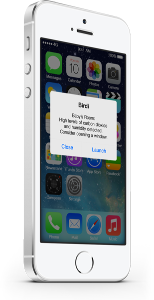 Birdi, a smart air monitor that uses AllJoyn, communicates through smartphones, not loud beeps.