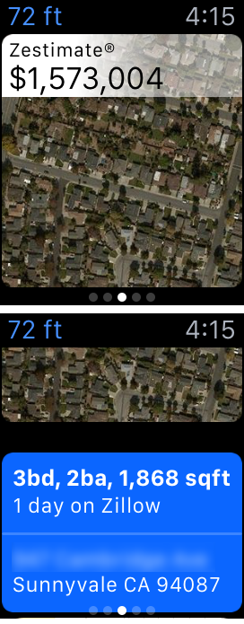 Similarly, Zillow, the real-estate app, shows a (house) price and a map, but who can tell where the map is, based on the aerial view? The 72 ft title is cryptic: is it 72 ft from me? In what direction? Is this the closest house for sale, just the closest house, or a random house that is 72ft away? Where is it on the map? Luckily, if I scrolled down I could see the address, but the map is pretty much useless in this type of display.