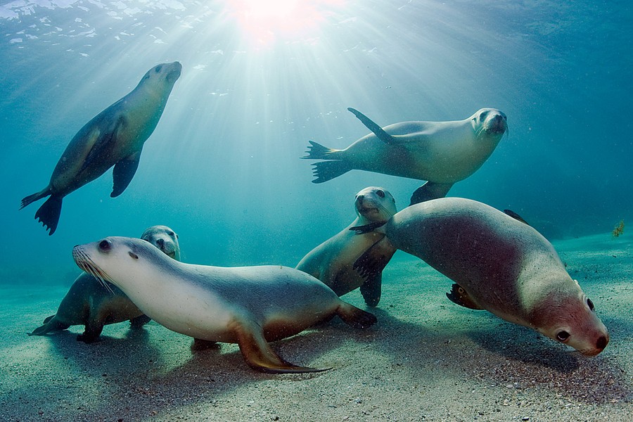 Read moreRare and endangered Australian Sea Lions (Neophoca cinerea) swim and play in the shallows of Hopkins Island, South Australia. #