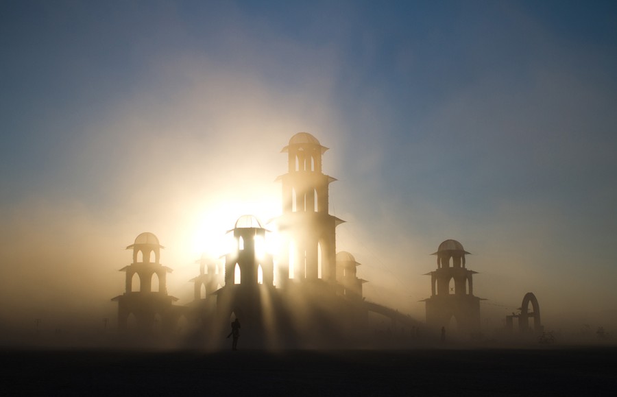Read moreMorning light breaking through the windows of the 'Temple of Transition' during the Burning Man event 2011. #