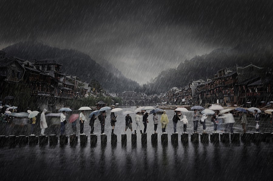 Read moreWinner, Travel, Open Competition: My photo "Rain in Ancient Town" was shot in southern China - Phoenix Town - which shows a scene of people traveling in the rain during the rainy season. In the background there are old residential buildings and an old stone bridge. #