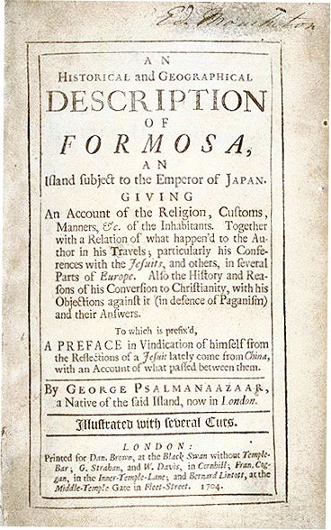 A Modest Proposal makes a passing reference to “the famous Psalmanazar, a native of the island Formosa.” This blond, blue-eyed “savage” claimed people ate children in his homeland. “When any young person happened to be put to death,” Jonathan Swift recounted, “the executioner sold the carcass to persons of quality as a prime dainty.” George Psalmanazar claimed to be a kidnapping victim who was snatched from Formosa (now known as Taiwan) by a Jesuit named Father de Rode of Avignon. This sinister missionary brought him to Europe and pressured the fair young lad to convert from paganism to Catholicism. He was thrown into prison after resisting their overtures but soon escaped their clutches. Soldiers belonging to the elector of Cologne captured Psalmanazar and shipped him off to another batch of scheming Catholics, but he got away again. Then Dutch soldiers detained him and pushed Calvinism on him, to no avail (he just couldn’t buy into the doctrine of predestination). While in the Netherlands, Psalmanazar crossed paths with an Anglican priest named Alexander Innes, who dazzled him with the Church of England’s teachings. “At my arrival at London,” he later recalled, “Mr. Innes, and some worthy clergymen of his acquaintance, introduced me to the bishop of London, and got soon after a good number of friends among the clergy and laiety.”