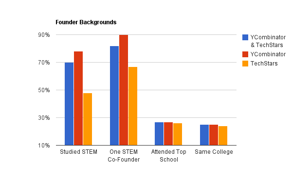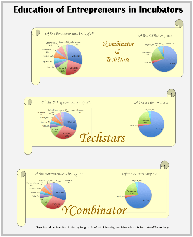 - The accelerators might tout that they are more exclusive than Yale, Harvard, MIT, Stanford etc but those graduates make up a non-insignificant portion of startup founders the accelerators accept.