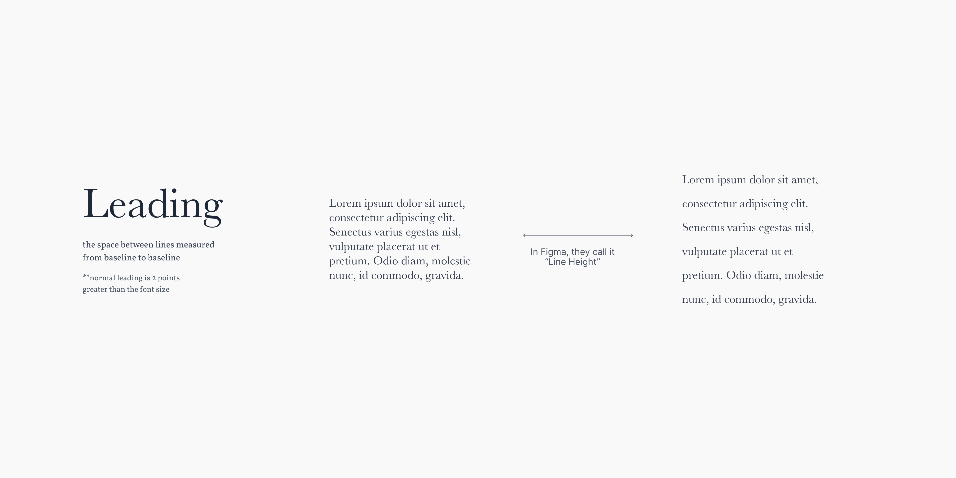 These three terms define the rhythm and flow of text. Kerning adjusts the space between individual letters, tracking controls spacing across whole words or paragraphs, and leading (pronounced “ledding”) sets the space between lines.
