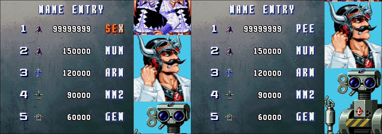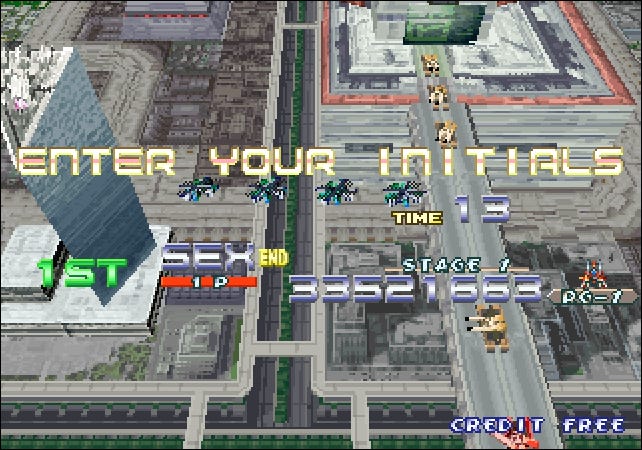 If you enter SEX into Sonic Wings Special, it might record your name as PEE: