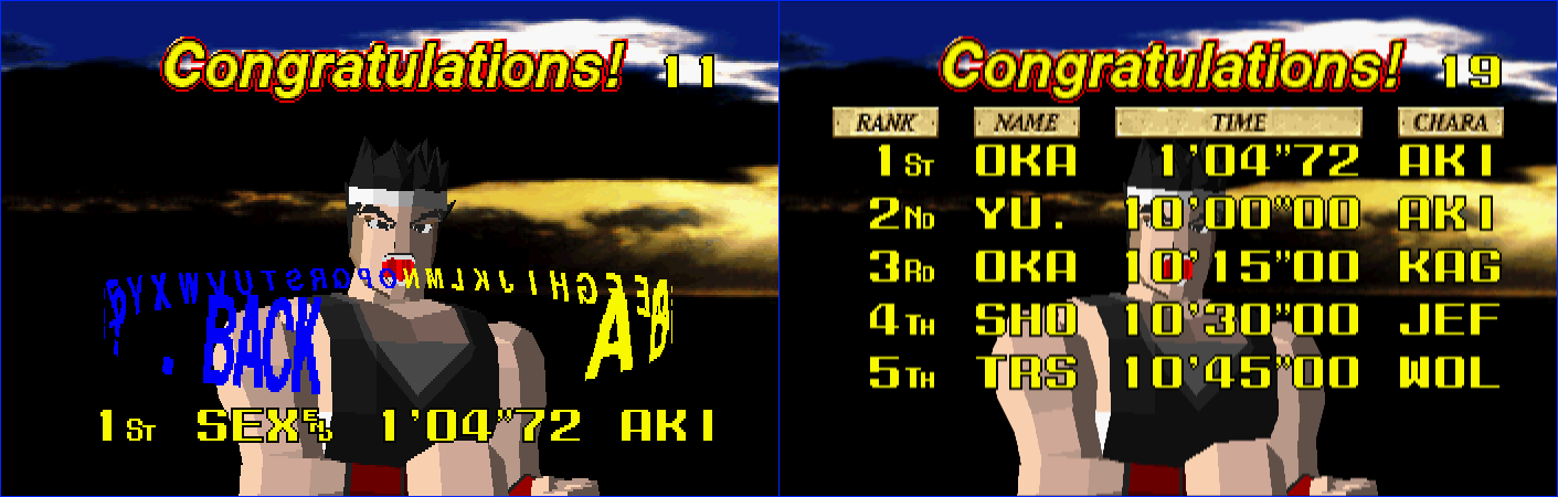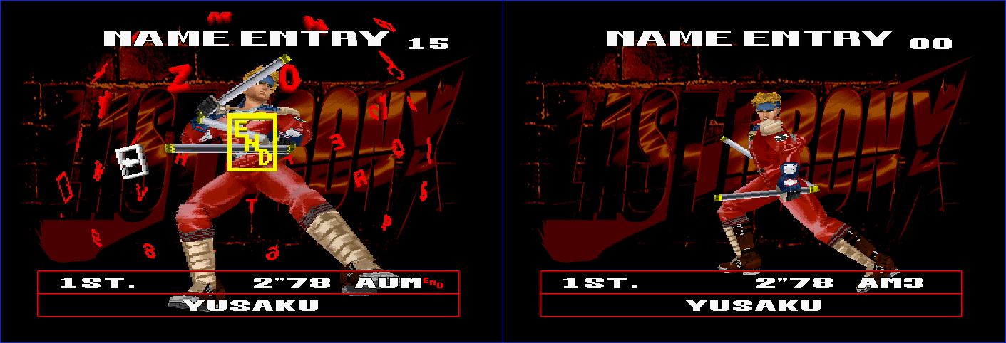 There are plenty of non-Saturn games that censor certain words, too. Battle Arena Toshinden 2 on PlayStation blocks various extremist group names in addition to aforementioned AUM – it won’t let you put in ETA, IRA, or PLO.