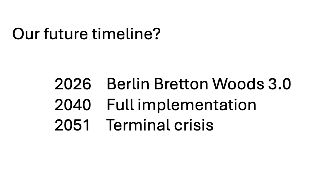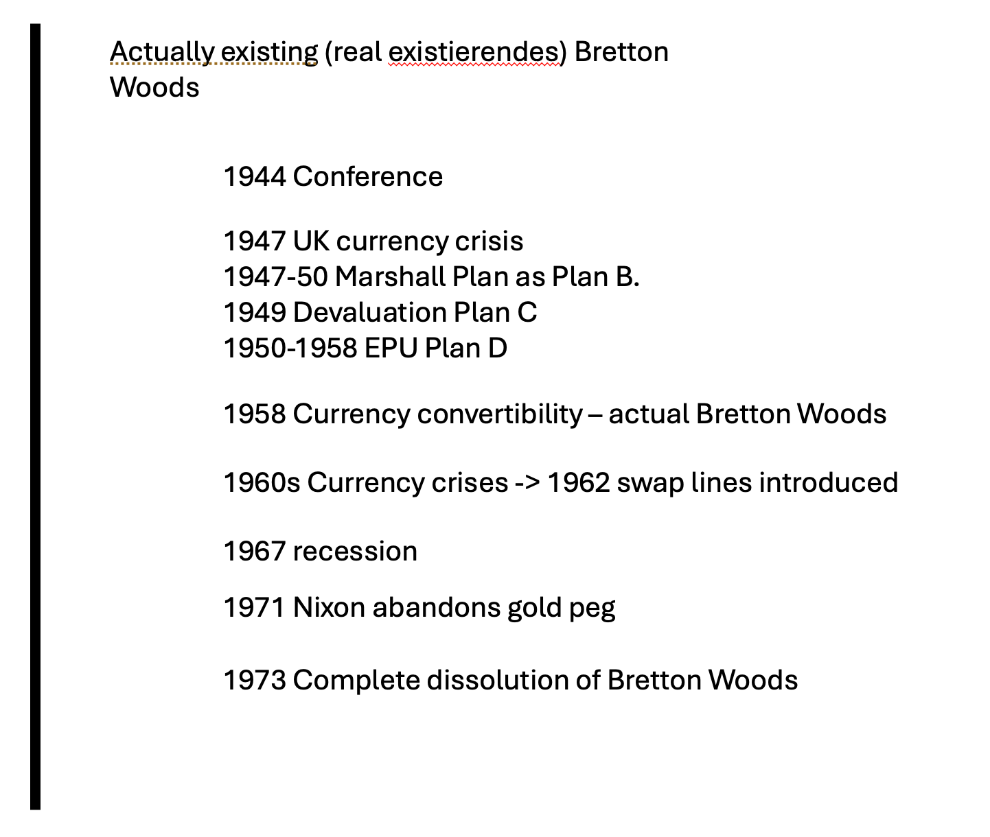 If we actually embarked on a “new Bretton Woods”, now, if we followed the historic script, this would be the timeline: