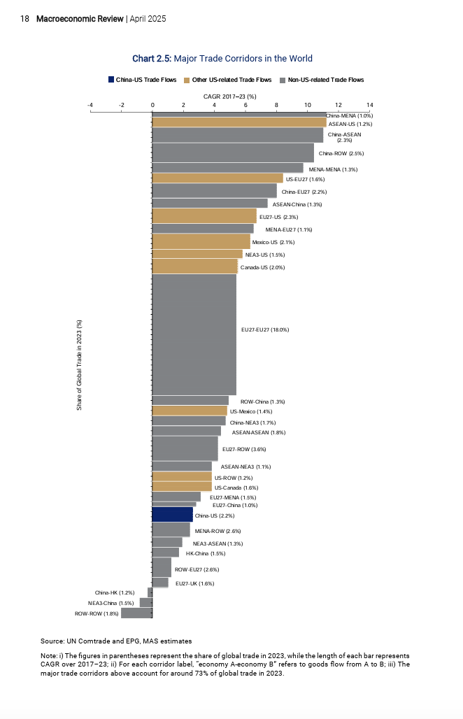 In the last 10 years, precisely in the time that the US has lost the plot and the Europeans have being tying themselves in knots, the Chinese effort has broadened out. The result is a tripolar world trading system. One pole is American. It is far more modest than the noise made by US trade policy would lead you to believe. Chinese exports to the United States make up roughly 2.5% of global trade. And it is not even a rapidly growing part of this pie.