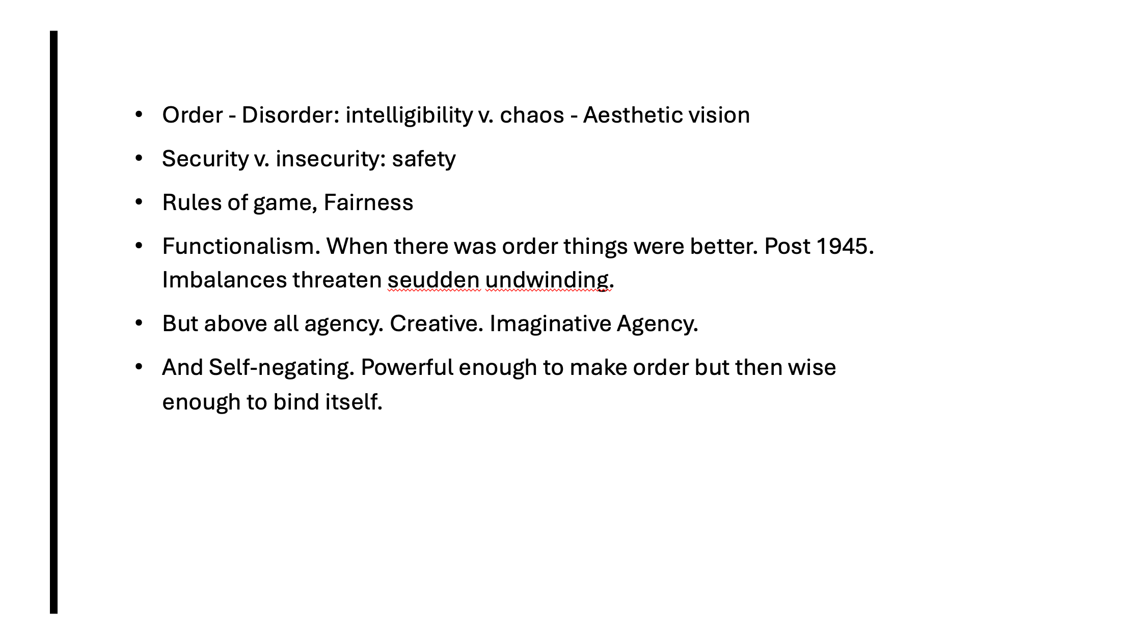 Does that mean we have to abandon the virtues of order – the restrained agency, the transparency, the fairness, the functionality? No, but we have to change the way in which we think about how the world works.