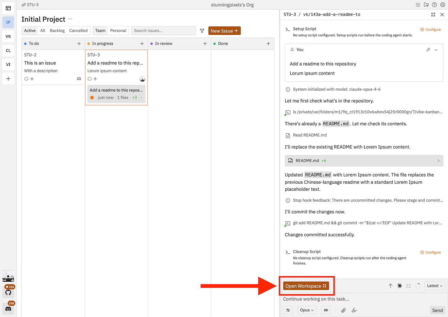 Planning and task state as the primary UI. Tools like Vibe Kanban have replaced “tabs and files” with “tasks and states” as the top-level mental model. You create task cards (a landing page, a backend service, an email integration), assign each to an agent and a model, and manage the whole effort like a lightweight project board - except the “team” is running autonomously. This is a project management surface that happens to have agents doing the implementation.