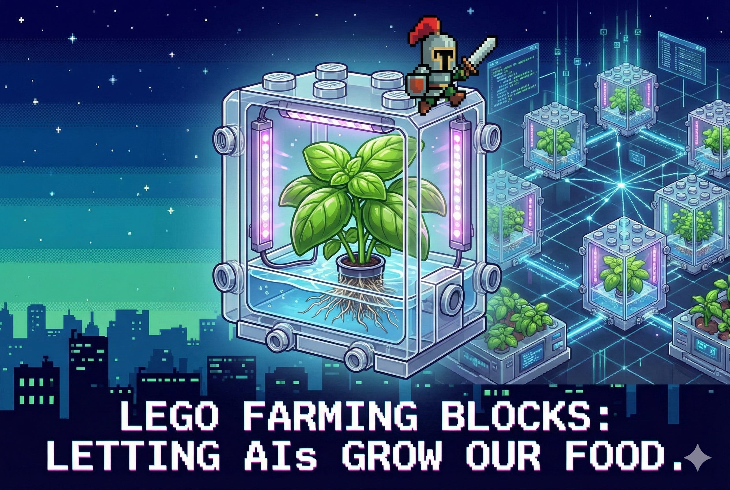 But as we learnt from distributed systems and from electricity self-consumption: true resilience requires some level of decentralisation. What if everyone could grow some basic nutrients at home without any knowledge of farming just by plug-and-playing a device? Enter the lego farming modules (I should definitely find a better name for this, but let’s not overthink it for now).