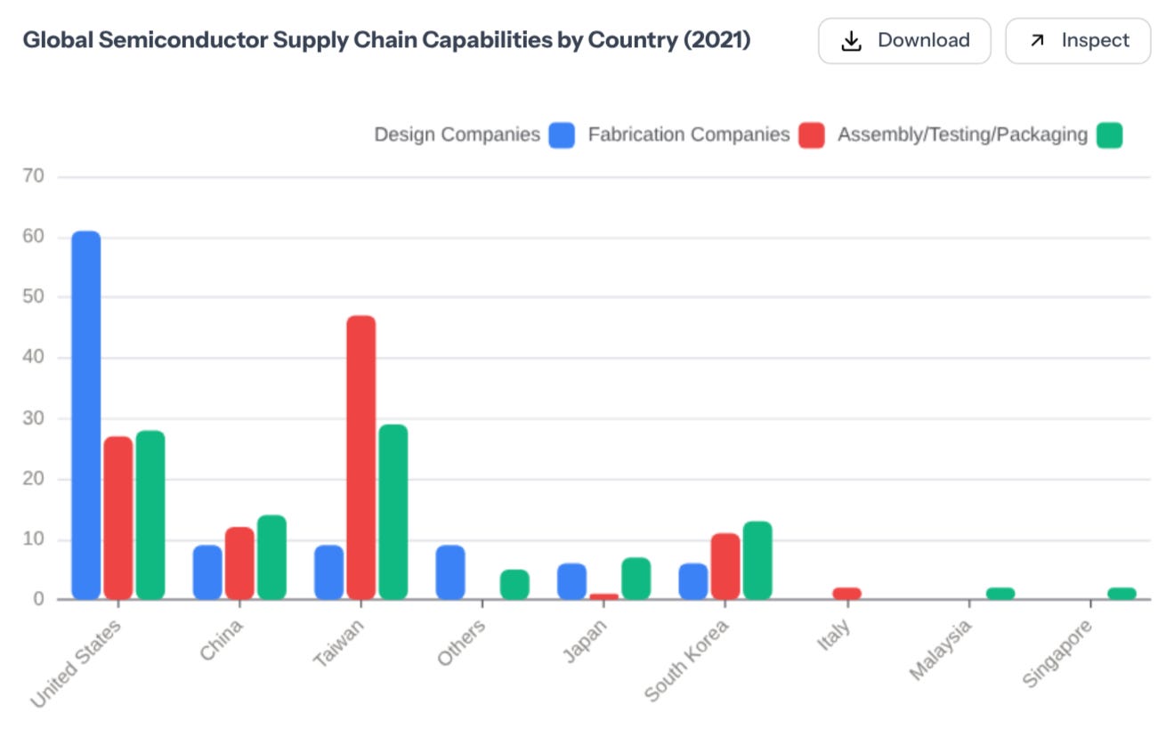 If you look at the semiconductor supply chain from a distance, it looks like a global web. But if you look closer, it looks much more like a funnel. A great way to understand the current state of affairs, and how companies like Apple have found themselves in this situation, is to read Apple In China from Patrick McGee. I read it this summer completely by chance and I can’t recommend it enough.