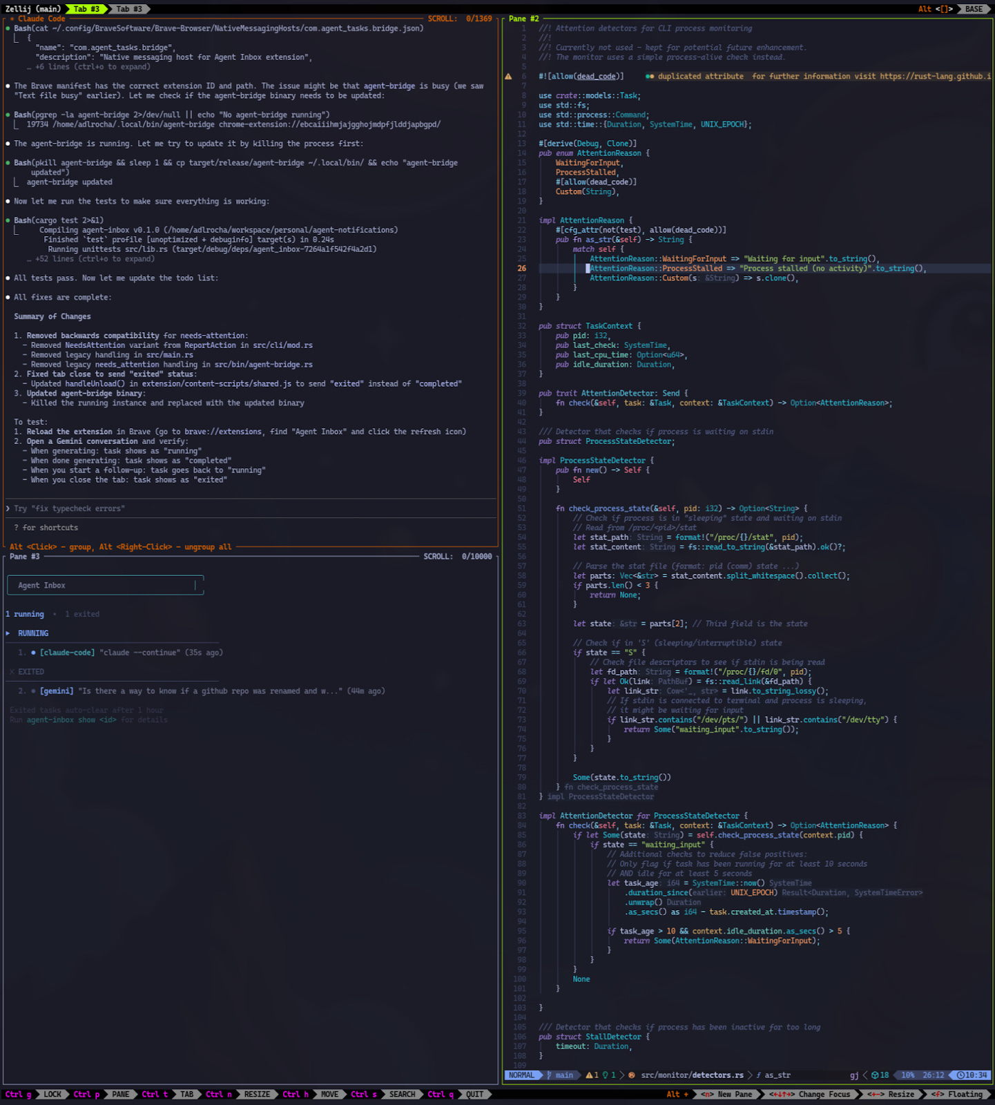 Zellij as my terminal window multiplexer.