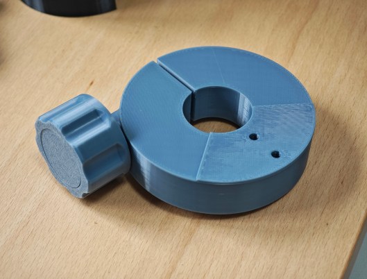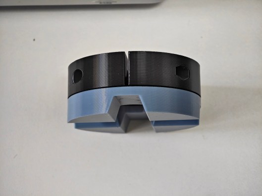 The two parts of the lower clamp are printed and joined.