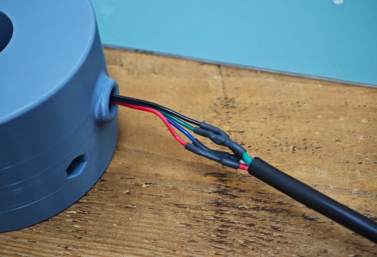 The motor wiring needs to be extended and this is achieved by soldering the four wires in the motor loom to four cores in a length of four-core electrical cable.