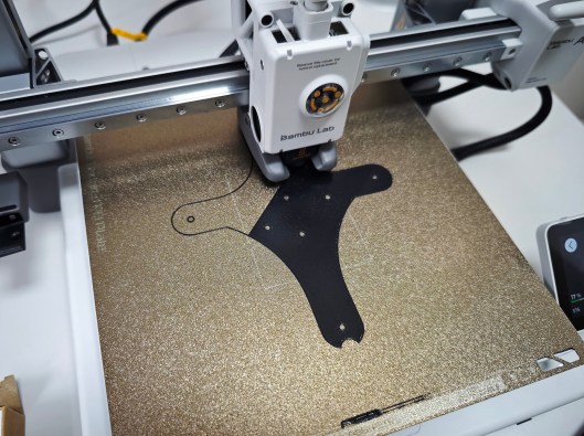 I started the build in June 2024 by taking delivery of an unsealed 390 x 390 mm steamed beech veneered MDF base board and sealing it in several coats of clear satin varnish. That having been done, I then proceeded to do nothing at all, not even open the 3d-printer box until March of this year. Opening the package from Bambu Labs was therefore the catalyst to getting the project proper underway.