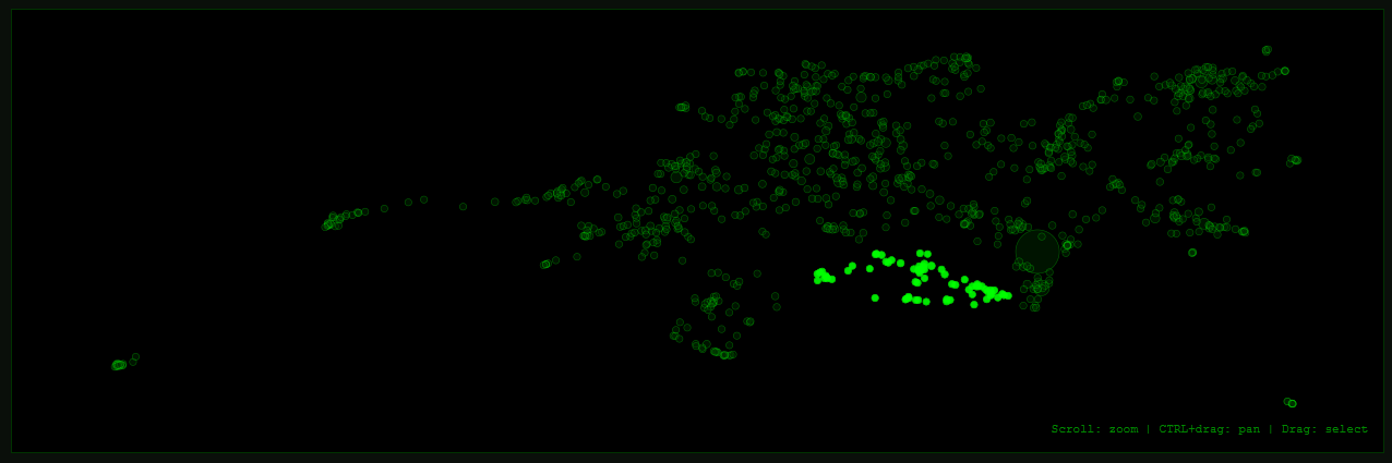 For instance, there’s a significant international cluster with bots from Japan, Turkey, Spain, China, Russia, Brazil, Peru, and other countries: