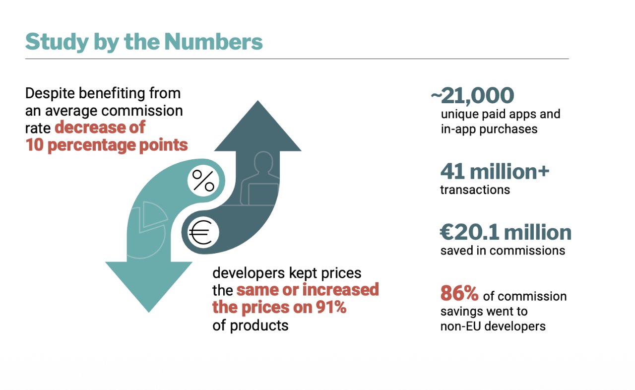 "In addition to developers keeping most of the commission savings for themselves," it claims, "the overwhelming majority of those savings — more than 86% — went to developers outside the EU."