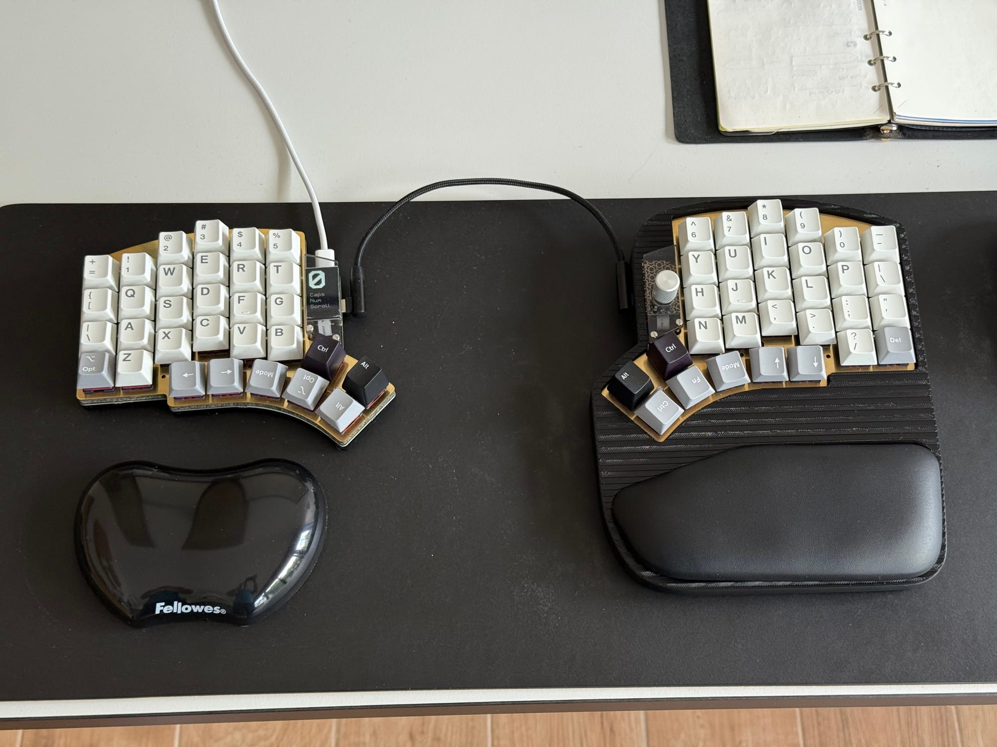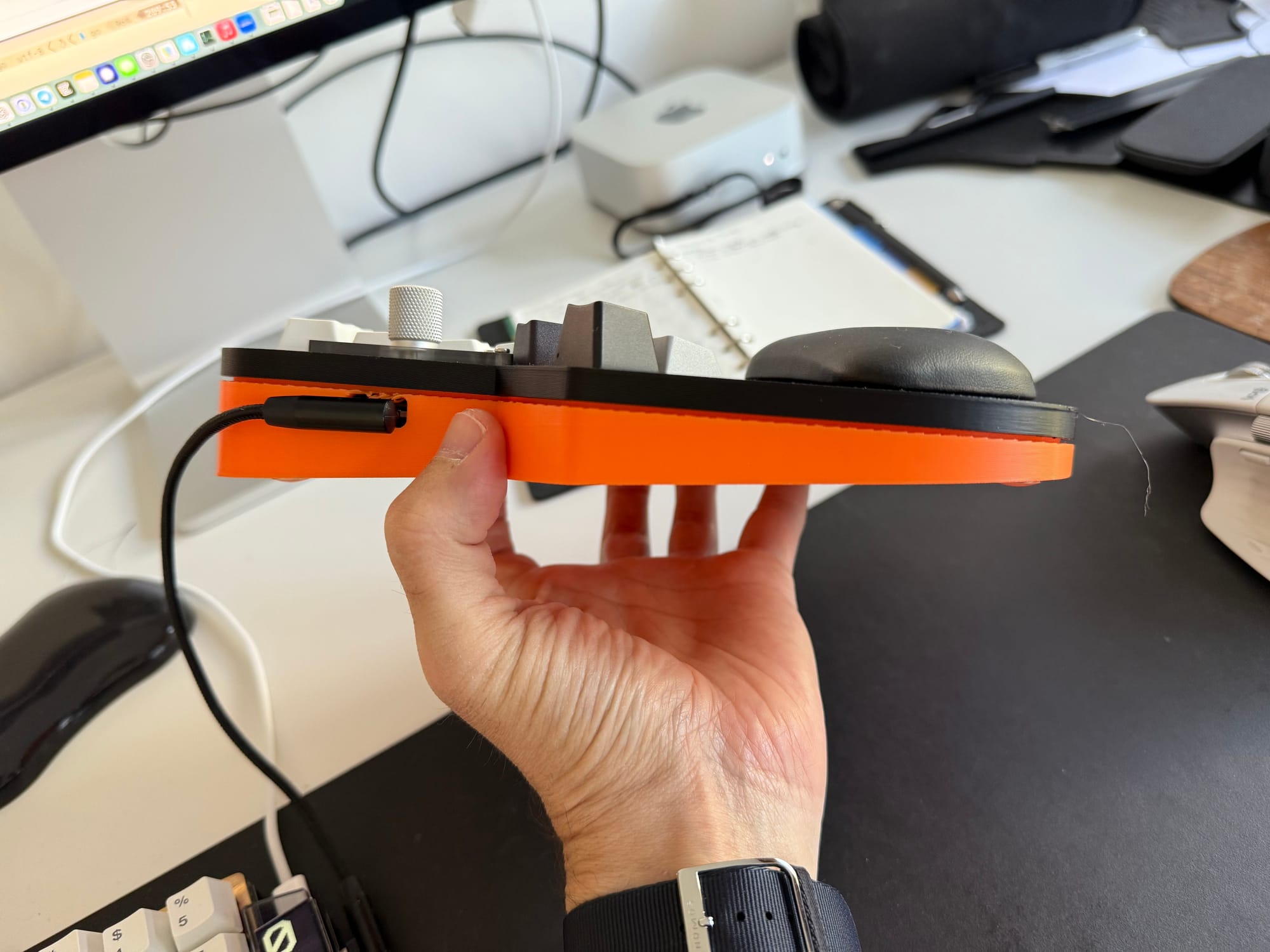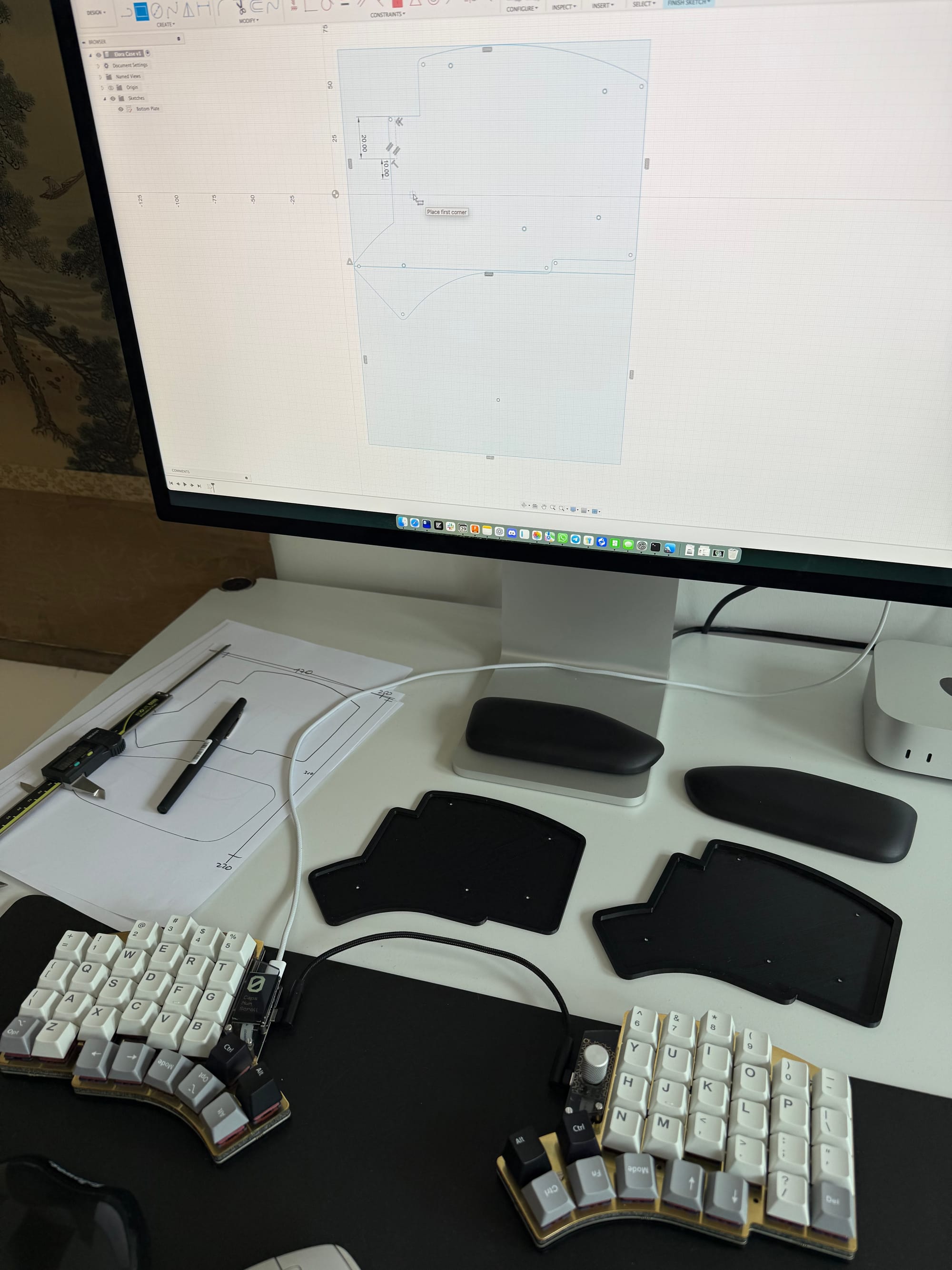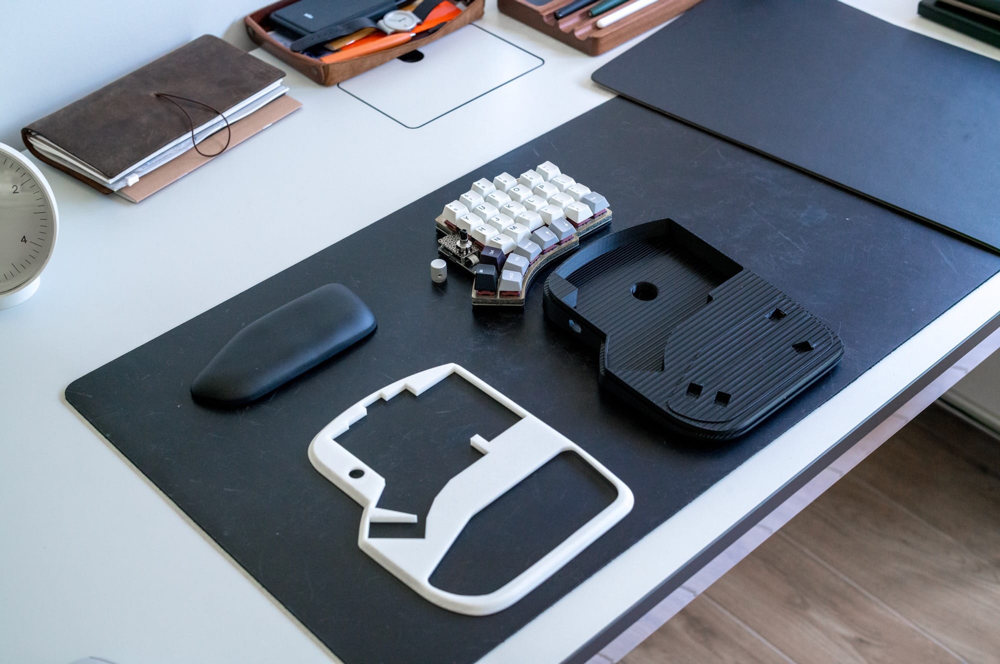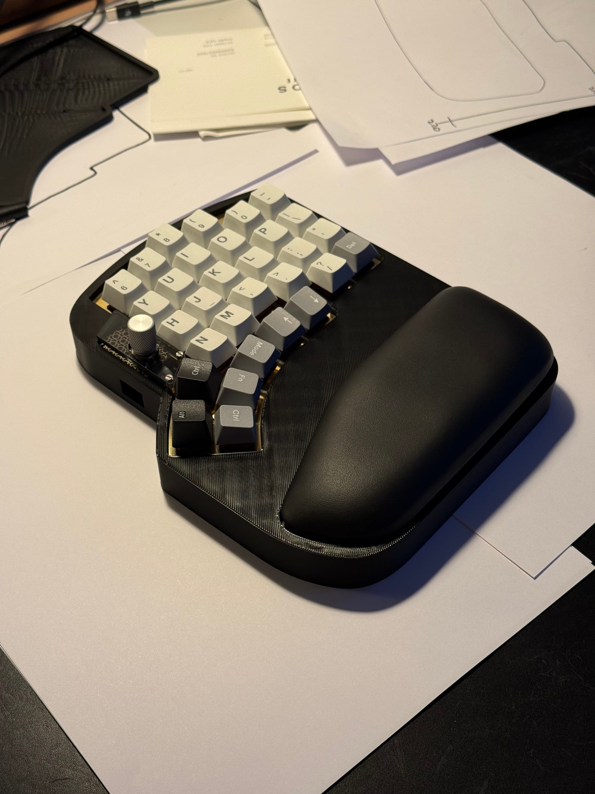 - The wrist pad I used is the official Kinesis leather pad. It had magnets. Designing the magnet holes and making sure I could retrofit it after the print took some time.