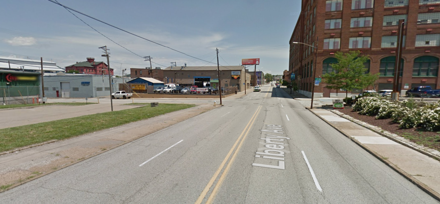 The crash occurred in Pittsburgh’s Strip District. McLemore was on a four-lane road called Liberty Avenue, heading Northeast, while the Uber vehicle was approaching from the opposite direction. This screenshot from Google Maps shows the intersection.