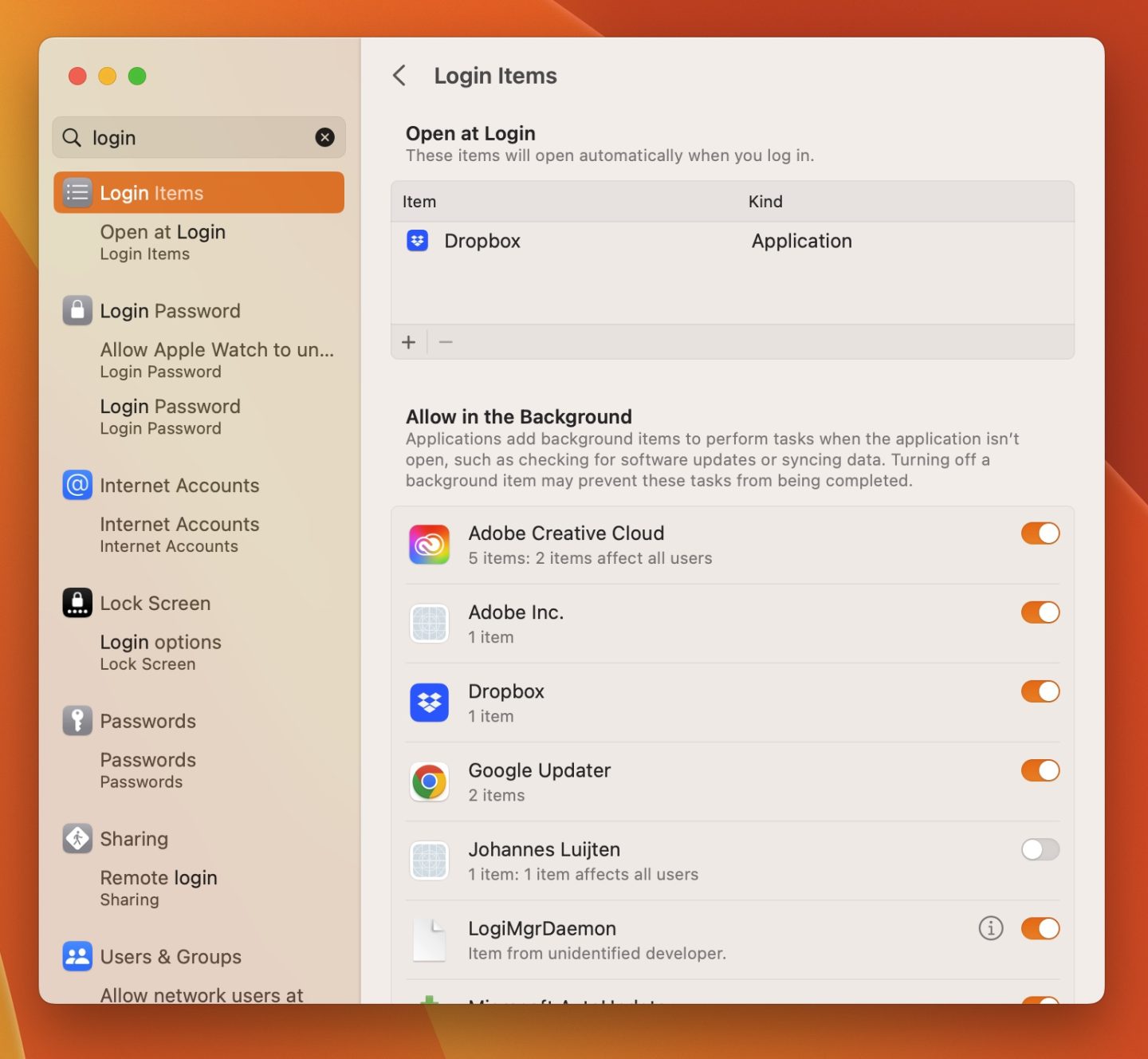 Login Items will tell you about all the apps with background access to your Mac, but it also loses some of the flexibility that was present in System Preferences.
