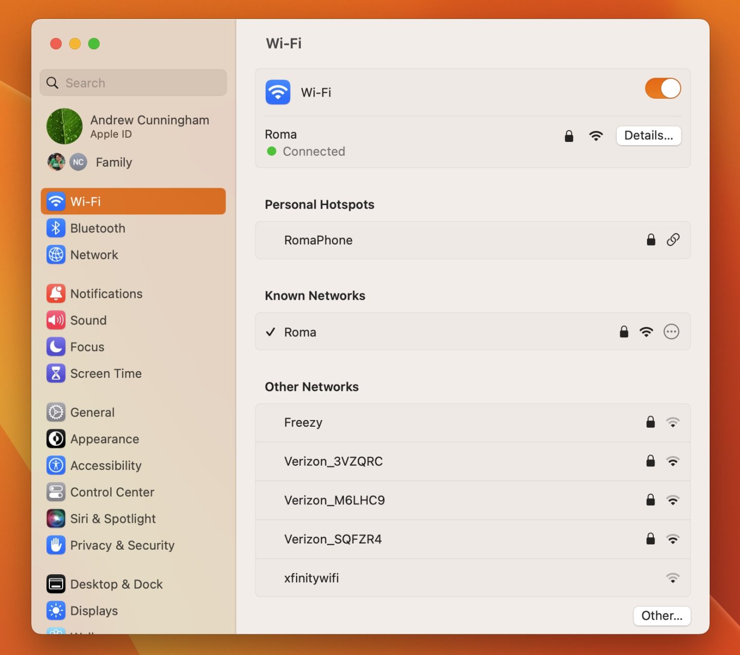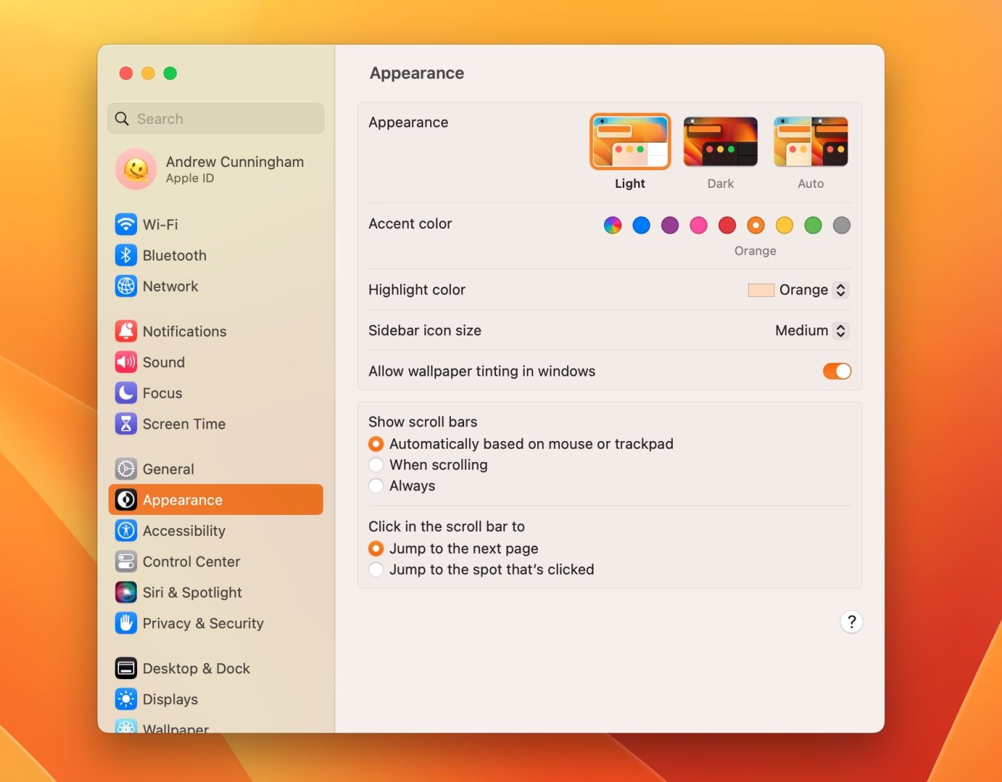 The desktop wallpaper continues the post-Big Sur tradition of using colorful abstractions rather than high-res photos for branding, though in this case, the orange-and-blue curves are concrete enough to evoke a California poppy. The default wallpaper dynamically shifts color throughout the day, and a few additional color-swirl-y wallpapers have been added, plus there’s an orange-tinged screensaver included among the returning favorites. But as with Monterey, there are no new high-res photos of Ventura or its surrounding environs, a tradition that appears to have ended with Big Sur.
