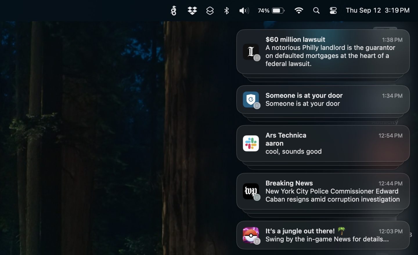 This image has been the default wallpaper throughout the beta process, and it still ships with the operating system, but the default wallpaper in the shipping version of Sequoia is a high-resolution image of the titular forest. Both images can also spring into motion if you have them set as your desktop wallpaper and your screen saver simultaneously, taking advantage of the Apple TV-ish movie-screensavers introduced in Sonoma last year.
