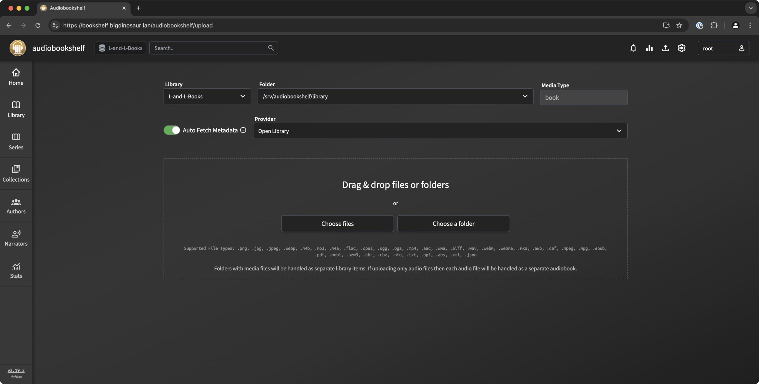 You can populate your library via Audiobookshelf’s upload page, if desired. Credit: Lee Hutchinson