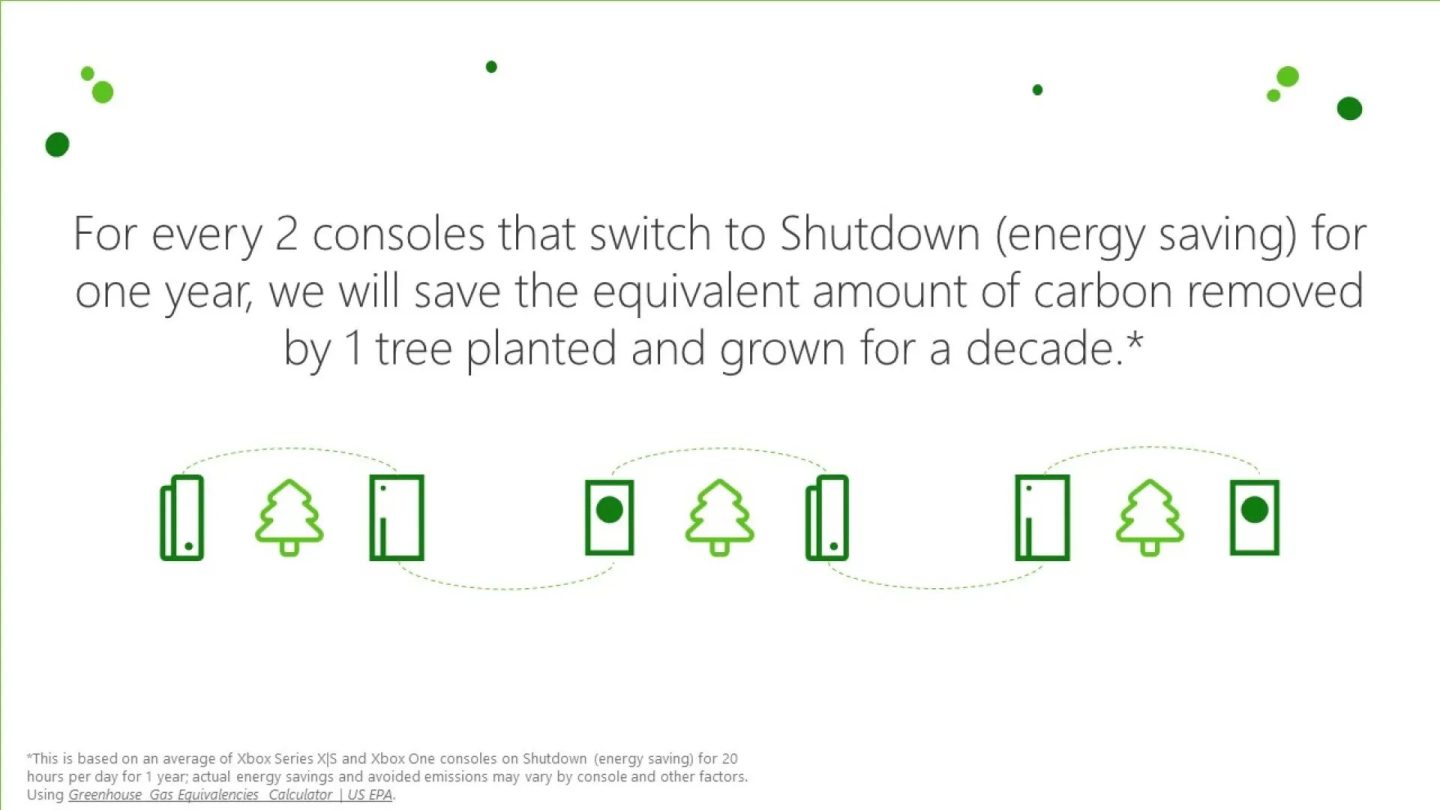 Early in 2021, the Natural Resources Defense Council urged Microsoft to make an energy-saving mode the Xbox’s default. The nonprofit advocacy group calculated that having Sleep as the first-listed power mode could draw 4 billion kilowatt-hours in the US through 2025, the equivalent of a 500 MW power plant, $500 million in energy costs (at 2021 rates), and 3 million tons of carbon dioxide output.