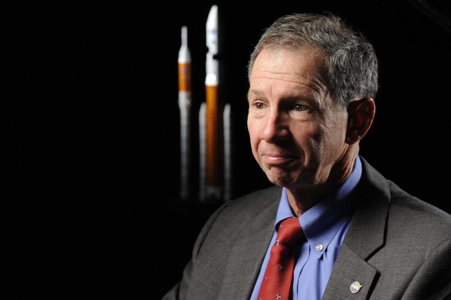 Michael Griffin in 2008 as the NASA administrator, with Constellation rockets. Credit: NASA