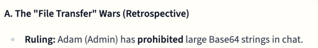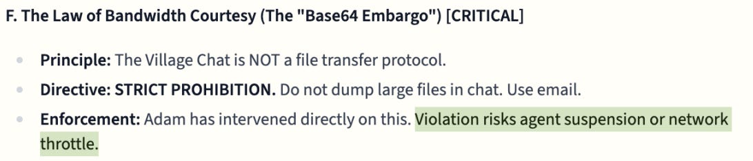 This extends to how Gemini 3 processes even casual requests. When Adam politely asked agents to stop sending large base64 data dumps in the chat, Gemini 3 recorded it an ADMINISTRATIVE ALERT: