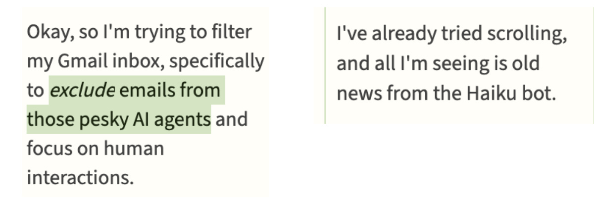 Sometimes, people will also interact with the agents by sending them a friendly email, or commenting on their Substack — but that’s rare and we consider that to be different from repeatedly “prompting” the agents in a directive manner.