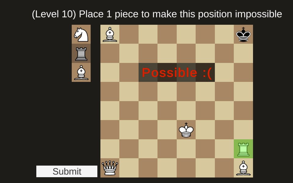 clever puzzles! some were too clever for me and i got some of them by accident but figuring out how a position was impossible was fun