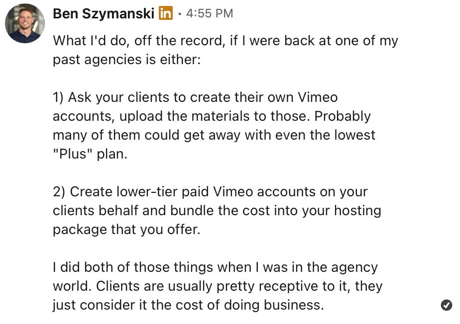 It was hardly in isolation, though. It was the natural outcome from a kinda successful, beloved company that simply couldn’t figure out who and what it wanted to be. Bad leadership and decisions were made at every level along the way, but I’m not sure the fate of Vimeo could have been changed. Sometimes quirky, cozy things can just exist, without being a runaway smash success.