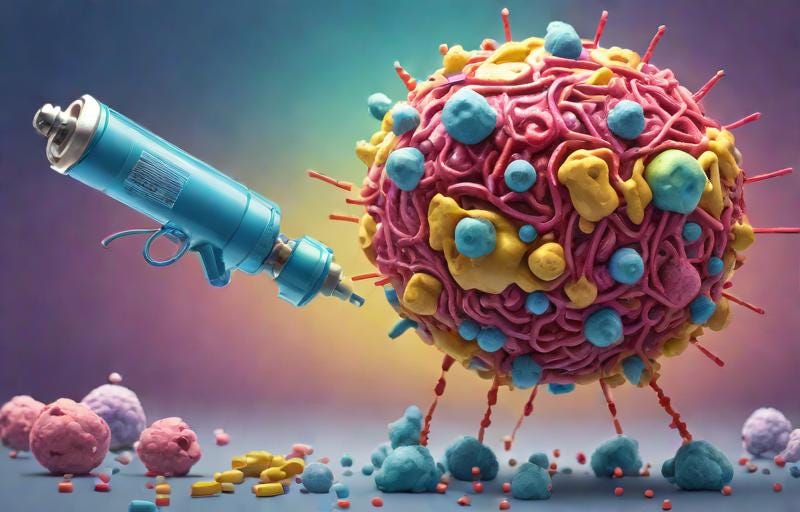 To create an mRNA cancer vaccine, a patient’s tumor is biopsied to identify unique target mutations —> mRNA correlating to mutations is synthesized and injected into the patient —> the patient’s cells create the targeted protein —> the creation of foreign proteins stimulates the immune system and teaches it how to recognize the target protein —> The immune system (especially T cells) search for this target protein and destroy the cancer cells to which it’s attached. Cancer cells are notorious at finding ways to hide from the immune system, but the mRNA vaccine is like giving the immune system magnifying glasses. The mRNA cancer vaccine production process is similar to that of producing a COVID vaccine, except, instead of a spike protein, the target is the neoantigen. Thanks to the speed and flexibility of mRNA vaccines, everyone with cancer could have a personalized cancer vaccine that’ll have significantly fewer side effects than chemo or radiation.
